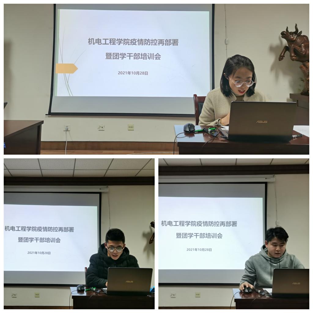 为全面落实学校疫情防控相关部署要求,立足疫情防控常态化工作需要,将“立德树人”贯穿于学生成长成才全过程,进一步提升学生干部的工作能力和水平,充分发挥学生干部在服务学生中的作用。2021年10月28日15:00,机电工程学院通过腾讯会议召开了疫情防控再部署暨团学干部培训大会。学院党委副书记、副院长荀新文,团委书记胡瑶以及团委、学生会、青年志愿者协会全体学生干部参加了会议。