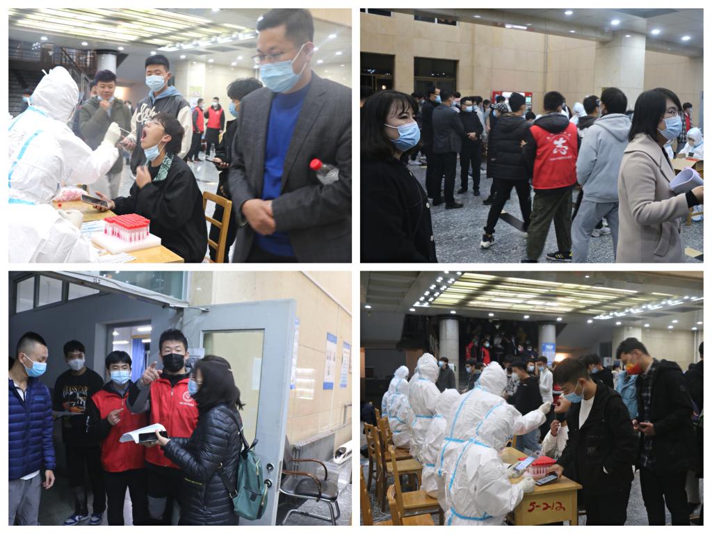 为打赢疫情防控的遭遇战和阻击战,配合好医护工作者对我校我院学生核酸检测采集工作,10月21日晚10:00,学院党委副书记、副院长荀新文带领学工办主任张晓丽、团委书记胡瑶、辅导员等学工战线的老师和学生干部第一时间赴核酸检测采样点现场展开工作,让党旗团旗在战“疫”一线高高飘扬。