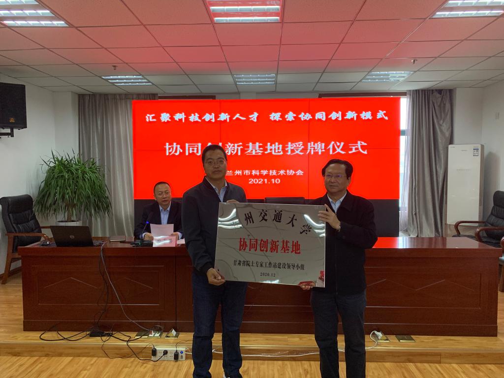 2021年10月13日下午,受甘肃省科学技术协会、甘肃省院士专家工作站建设领导小组委托,兰州市科学技术协会根据《甘肃省协同创新基地管理办法》有关要求,组织对在兰各协同创新基地年度运行情况进行集中评估,并举行了授牌仪式。会议由兰州市科学技术协会柴军荣副主席主持,市科协主席谭生龙对各基地进行授牌。学院作为我校代表之一参与了我校甘肃省协同创新基地通过评估并获得授牌。