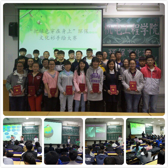 经过3月24日的展览投票,最后共有20组作品进入决赛。本场比赛由参赛选手们的风采展示拉开帷幕,他们分别用唱歌,武术,魔术表演等不同形式赢得观众们阵阵掌声。接着在ppt演示讲解环节中,各组作品均创意独具匠心,新颖独特,他们有的作品上半部分描绘了高楼大厦,而下半部分却反映了经济发展带来的污染;有的则以抽象的形式描绘了人类破坏环境所造成的种种后果,发人深省,令人深思,赢得了评委的一致好评。在本次比赛期间又穿插有观众答题环节和精彩的魔术表演,打破了原本现场枯燥乏味的氛围,也掀起了本次大赛的高潮。最后经过两个小时激烈的比拼,共有八组来自不同学院的选手获奖。