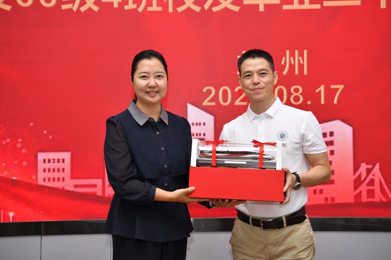 最后,机设004班校友向学院捐赠了同学们参与研发和设计的轨道车辆模型纪念品,表达了对母校的眷念之情和美好祝愿。学校为校友们赠送了饱含深意的校徽,并表达了美好的祝福和殷切的期望。