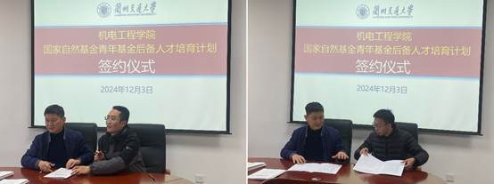 12月3日下午,机电工程学院在笃行楼707会议室举行国家自然基金青年基金后备人才培育计划项目签约仪式,学院院长李宗刚、党委书记张慧、副院长高全福、学院办公室、科研办公室及获得培育项目资助的青年教师参加签约仪式。签约仪式由李宗刚院长主持。
