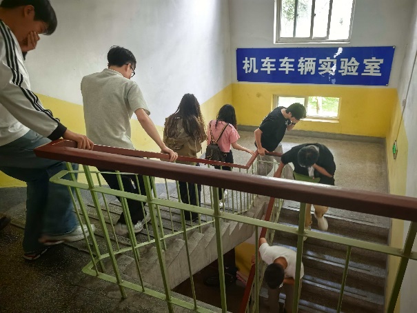 消防基础知识培训结束后,在校消防科和兰州政安防火知识宣传中心张警官的共同指导下,参与培训的师生们在车辆楼二楼进行了紧急疏散演练。