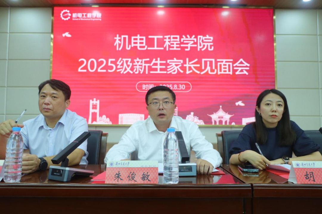 会议伊始,学院党委副书记、副院长朱俊敏代表学院对各位家长的到来表示热烈欢迎,并对新生们开启大学新阶段表示衷心祝贺。朱院长介绍了学院自1958年创办以来的办学传统与特色,强调学院始终秉持“立足甘肃,服务铁路,面向全国”的办学方向,传承铁路“道钉精神”,践行“厚德敬业,创新求是”的院训,致力于培养德智体美劳全面发展的应用型高级工程技术人才。他指出,大学是学生成长的关键时期,学院将知识、能力与素质培养贯穿教育全过程,通过课程建设、实践平台和师资力量全力支持学生成才。他呼吁家长要引导新生尽快转变角色、树立目标、融入集体,实现学识与素养共同提升,并希望家长多鼓励、多信任、多引导,协助学生顺利适应大学生活。他表示,学院将秉持“工匠精神”,以“爱心、耐心、暖心”的服务理念助力学生成长,努力培养国家和社会需要的高素质人才。他也希望,学院期待与家长保持沟通,通过家校协同育人,共同营造有利于学生全面发展的良好育人环境。