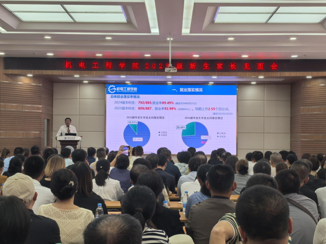 学院党委副书记、副院长朱俊敏就学生工作作专题介绍,从学生工作队伍、思想政治教育、日常管理服务、学业与生涯指导、多元发展平台以及就业情况等方面,全面介绍了学院在思政教育、团学工作与服务管理方面的举措与成效。他表示,学院将坚持“严、爱、细、实、新”的工作准则,围绕“教育、管理、服务”三大主线,不断优化育人环境,为新生搭建更优质的成长平台与更全面的发展空间。同时,他还从家长角度出发,就如何正确对待、科学引导大学生,帮助孩子适应校园、做好规划、养成自主学习习惯、保障健康安全等提出了具体建议,希望家长鼓励孩子培养自主意识、勇敢面对挑战、实现独立成长,并加强与学院的沟通协作,共同为学生发展保驾护航。