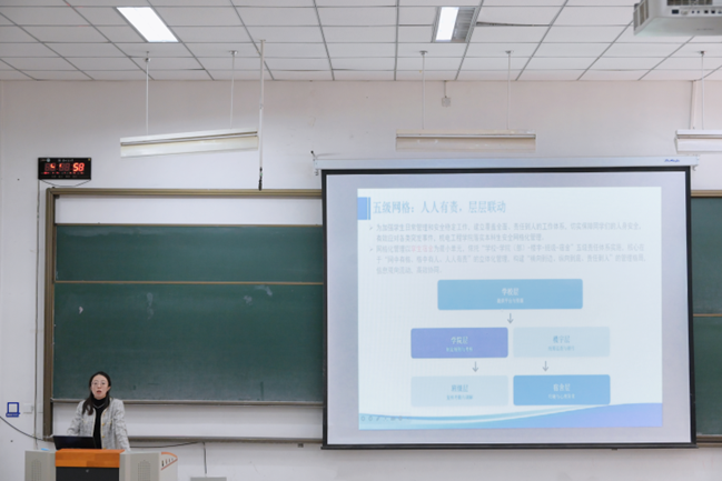 会上,学院学生工作办公室主任胡瑶围绕“总体要求、网格化管理机制、应急处理机制、责任追究与激励机制”四个方面系统解读了学校《学生网格化管理工作实施办法(试行)》重点条款;阐释了“学校-学院(部)-楼宇-班级-宿舍”五级责任体系;明确了小格(宿舍)网格员(宿舍长)和大格(班级)网格员(班长、团支书)的工作职责;梳理了“宿舍—班级—学院”三级联动场景与突发事件处置流程。胡老师谈到,三千余名机电学子的平安离不开全体网格员的用心守护,全体网格员需严格遵循“知责于心、履责于行、尽责于效”的工作准则,既要当好宿舍安全的“守夜人”,守护宿舍安全稳定;又要做好同学信赖的 “知心人”,搭建服务沟通纽带;更要成为应急处置的 “排头兵”,高效响应突发情况。同时,胡老师表示,学院后续将完善激励机制,通过常态化培训与应急演练,持续提升网格员队伍的专业化水平,推动网格化管理真正实现“闭环运行、高效响应、全面覆盖”。