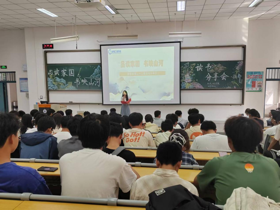 在喜迎祖国76周年华诞之际,为加强新生爱国主义教育,推进学院学风建设,全方位提升学生的综合素质,积极推动校园精神文明建设,着力营造“爱读书、善读书、读好书”的浓厚校园文化氛围,9月25日16:30,机电工程学院在第二教学楼2201教室举办了“品味书香 阅读悦美”第四届第二十二期读书分享会。此次该分享会由车辆2208班李悦同学主持。