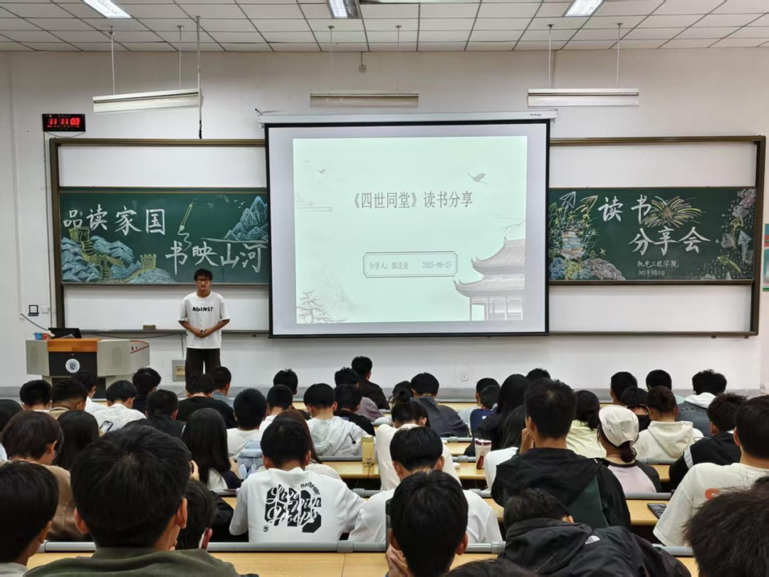 三位分享者或慷慨激昂,或娓娓道来,或深情诉说,以青春的视角解读经典,用真挚情感传递智慧,赢得台下阵阵掌声。他们的分享不仅展现了机电学子对知识的渴望和对经典的深入理解,更体现了新时代青年浓厚的爱国主义情怀和积极向上的精神风貌。