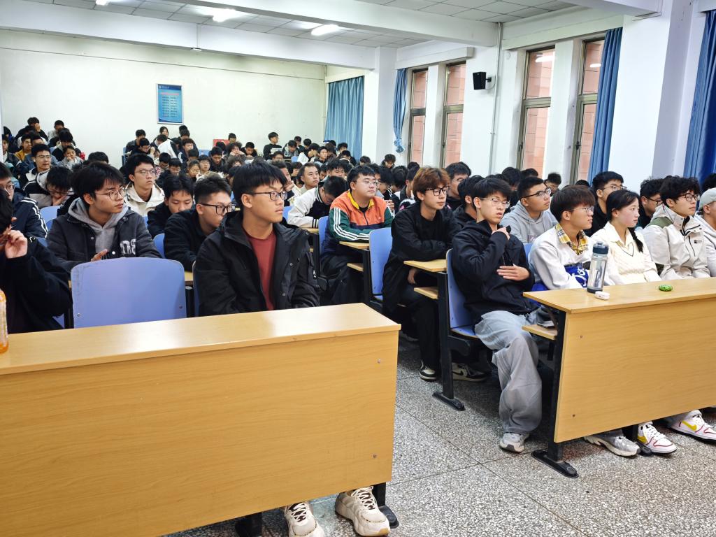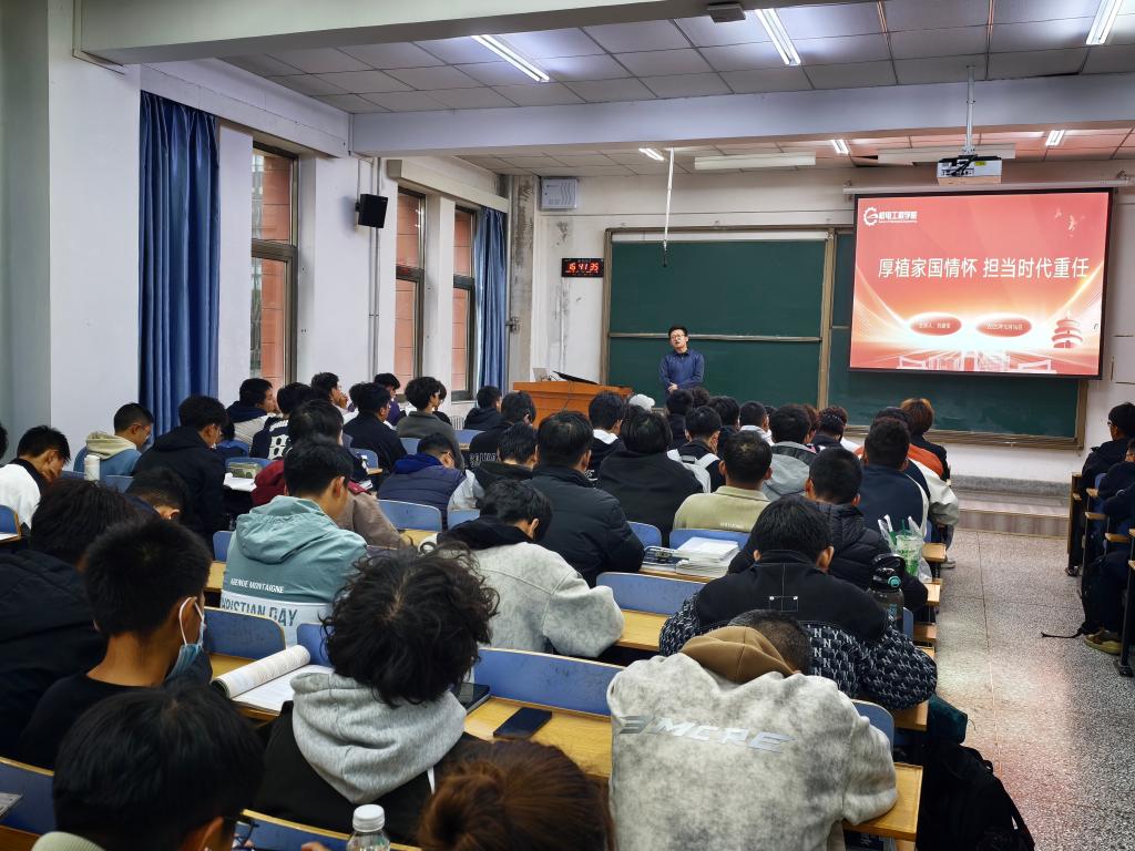 为引导2025级新生深刻理解爱国主义精神内涵,树立远大理想,坚定理想信念,2025年10月16日16:30,学院在第九教学楼1502教室举办了以“厚植家国情怀 担当时代重任”为主题的爱国主义教育专题讲座。本次讲座由学院2022级辅导员刘建军老师担任主讲,2025级各班班长、学生代表共计140余人参会。