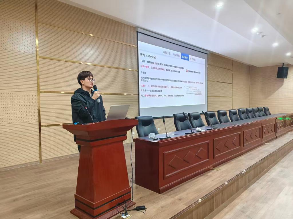 作为衡量大学生英语综合能力的重要标准,四六级考试不仅是学生学业进阶的关键环节,更是未来职业发展中所必备的能力证明。为助力同学们提升备考效率、掌握科学有效的学习方法,2025年10月30日16:30,学院在笃行楼中翼报告厅举办了四六级经验分享交流会。本次交流会由学院辅导员吴东亮老师担任主讲,同时邀请两位在四六级考试中取得优异成绩的同学分享实战经验。学院2023级、2025级200余名同学参加会议。