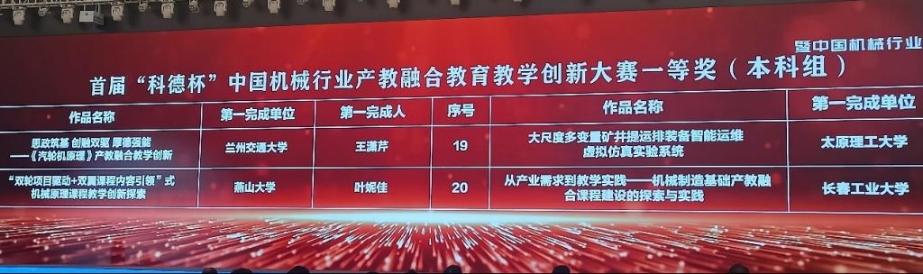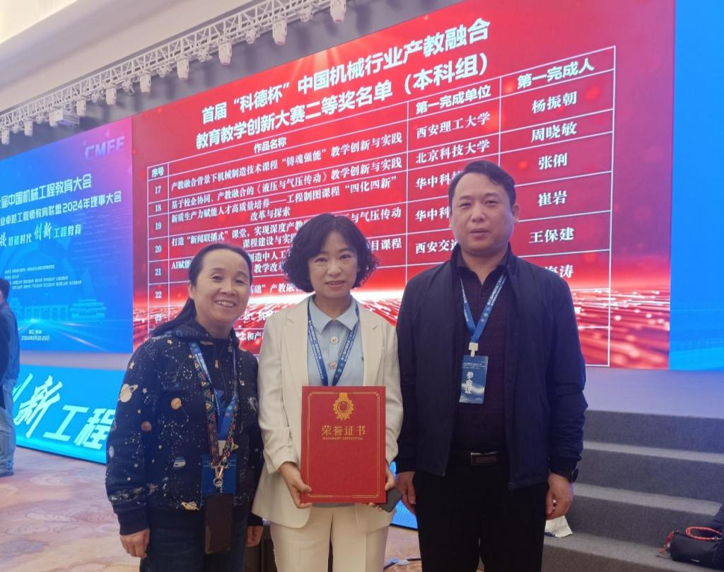 中国机械行业产教融合教育教学创新大赛为深入贯彻党中央、国务院关于教育强国、科技强国、人才强国的方针政策,深层次推进教育强国工程,充分发挥企业在卓越工程师人才培养方面的优势,推动产教融合迈向新阶段,推动产教融合、科教融汇、职普融通走深走实,加快培育和发展新质生产力,服务经济社会的高质量发展具有重大意义。我院教师团队在该项赛事中喜获佳绩,不仅是对我院教学改革创新的认可,更是对我院致力于培养高素质工程技术人才努力的肯定。我们将以此为契机,继续推进人才培养、不断深化产教融合、激发新质生产力,探索更多有效的教育教学模式,为国家培养更多的拔尖创新人才。