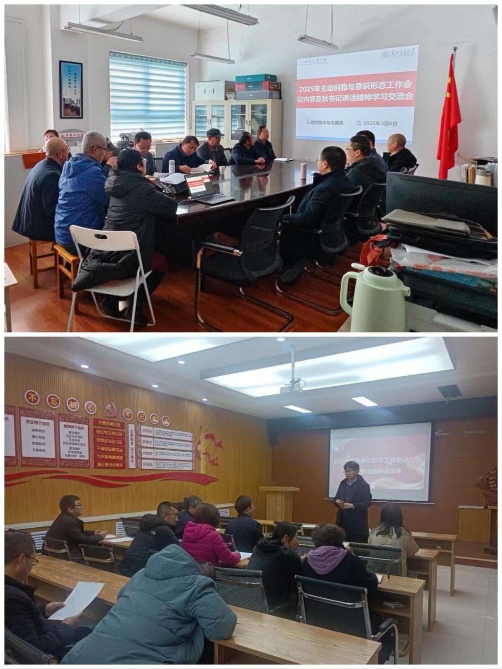 3月6日下午,学院六个系系主任依次面向各系教职工召开了主动创稳与意识形态工作会议。各系主任传达了学校关于2025年主动创稳、意识形态工作的重要指示精神和要求,结合学院和各系实际部署重点工作,深入分析当前安全稳定和意识形态工作面临的新形势和新挑战,进一步增强全体教职工的安全意识与责任意识;要求全系教职工将主动创稳和意识形态工作融入日常教学和管理的各环节和全过程,围绕学生思想动态关注、教师教学安全监督和教学设施安全检查等方面,建立完善的风险防控机制,保障学院的正常教学秩序和师生的安全稳定;鼓励全体教职工积极参与学校学院的主动创稳与意识形态建设,共同营造良好的校园安全氛围。